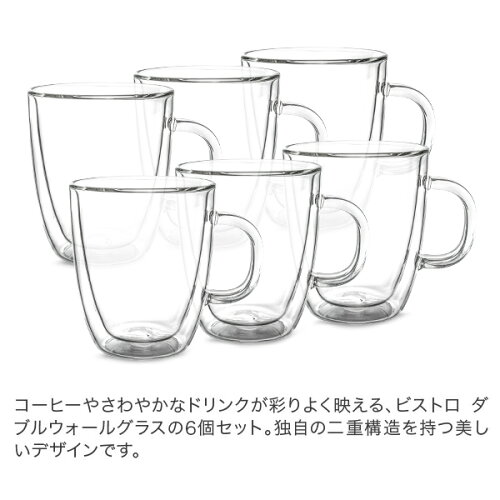 【GWもあす楽】[全品送料無料] ボダム Bodum ビストロ ダブルウォールグラス 300mL 6個セット 保温 エスプレッソ マグ 10604-10-6US BISTRO DWG 二重構造 プレゼント あす楽